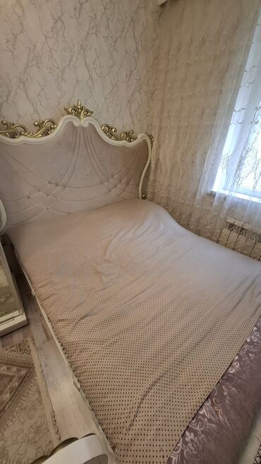 Klassik üslubda dəbdəbəli yataq otağı dəstiYeni kimidir Komplekt: - Kingsize ölçüdə çarpayı – yüksək, oyma başlıq, krem rəngli kapitone yumşaq hissə və bəzək daşları - 2 ədəd tumbalar – oyma naxış...