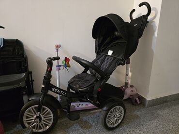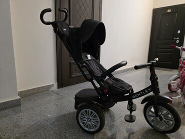 Bentley uşaq üçtəkərli velosiped/kolyaska 2-si 1-də, qara rəng.