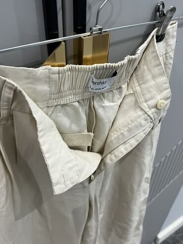 Bershka qadın şalvarı - Rəng: qara - Kəsim: yüngül “flare”/boru paça, dizdən aşağı genişlənən siluet - Bel: kəmər keçidləri olan klassik bel xətti - Ciblər: yan ciblər - Bağlanma: gizli fermuar və...