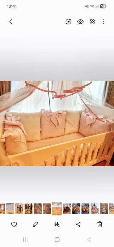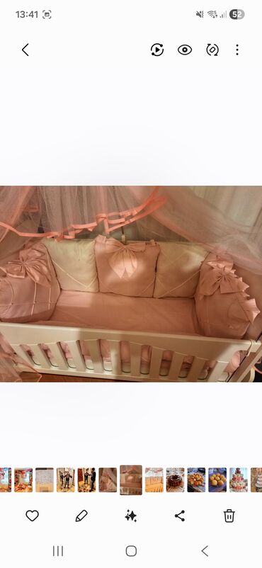 Beşik üçün premium tekstil dəsti - Rənglər: krem və bej tonları, qızılı naxış detalı - Dəst tərkibi (şəkillərə əsasən): - Beşik ətrafını tam örtən yumşaq qoruyucu 8 yastıqlar (kvadrat və düzbuca...