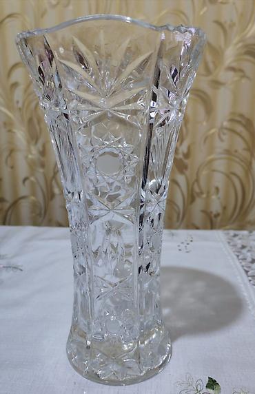 Kəsimli kristal vaza Rusiya istehsalıdır. Yenidir istifadə olunmayıb - Material: şəffaf, ağır kristal şüşə - Ölçü : hündürlük ~35sm, ağzın diametri ~ 45 sm diger bala...