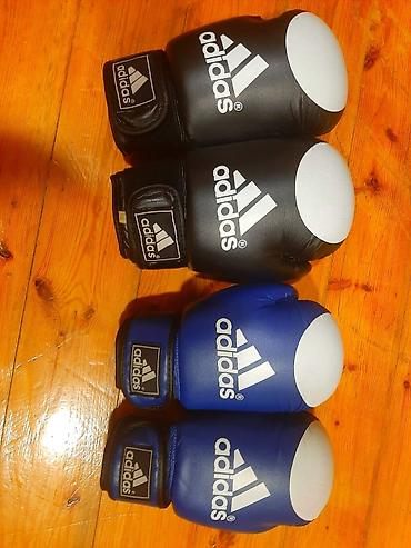 Adidas markasına məxsus mavi rəngli boks əlcəkləri. Əlcəklər "Amateur