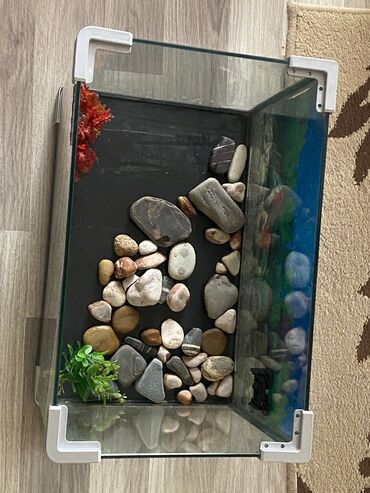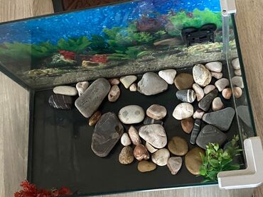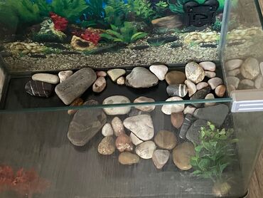 - Daxili dekor: müxtəlif ölçülü çınqıl və çay daşları, süni akvarium bitkiləri