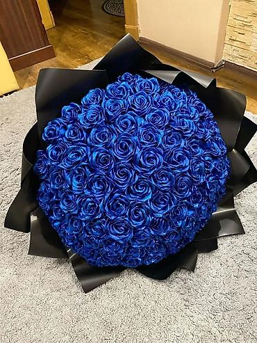Mavi güllərdən böyük buket - Rəng: dərin kobalt/mavi, parıltılı