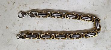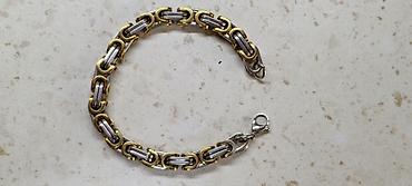 Qızılı rəngli kişi bilərziyi - Material: metal əsaslı, yüksək parlaqlığa malik qızılı rəng örtük - Zəncir tipi: iri halqalı, sıx hörgü (kütləvi və nümayişkaranə görünüş) - En: təxminən 10–12 mm (v...
