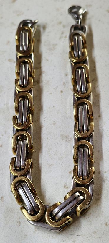 Qızılı rəngli kişi bilərziyi - Material: metal əsaslı, yüksək parlaqlığa malik qızılı rəng örtük - Zəncir tipi: iri halqalı, sıx hörgü (kütləvi və nümayişkaranə görünüş) - En: təxminən 10–12 mm (v...Giriş•Qeydiyyat