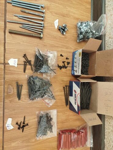 - Müxtəlif ölçülü və növlü vintlər: ağac/metal üçün qaragöz və fosfatlanmış vintlər, özünüvuran vintlər, uzun ağac vintləri