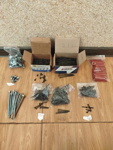 - Qutular: “AKFIX Self-Tapping Screws” və “SKOM Screws” (içində müxtəlif ölçülər)