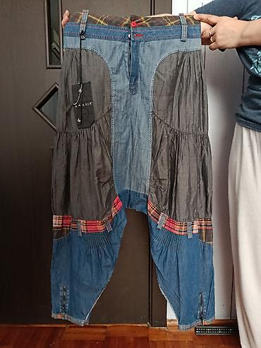 Məhsul: Qadın üçün etnik-boho üslubunda harem/kargo tipli şalvar. Denimm və nazik pambıq parçaların kombinasiyası ilə yığma kəsim.