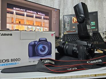 Canon 800d, yongnuo xarici flaş 18 135 lens, 1 orjinal 2yedek batareya, varta 6 şarj edilebilir batareya və cihaz, təmizləyici , 64 gb kart