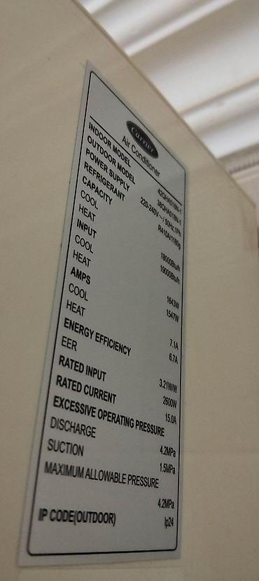 - Güc (BTU), enerji sinfi və model nömrəsi korpus üzərində göstərilməyib.