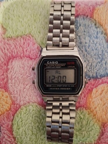 Casio rəqəmsal qol saatı – klassik kvadrat korpus və paslanmayan poladdan metal qolbaq.