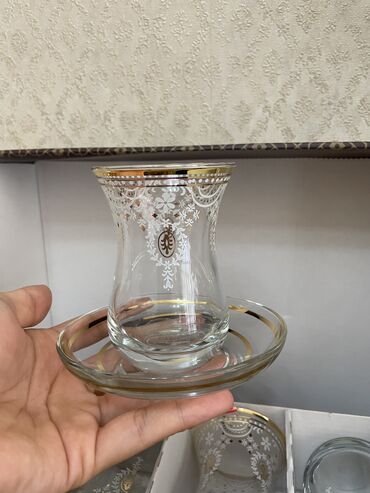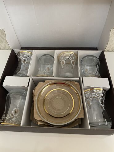 Yenidir, istifadə edilməyib. 6 nəfərlik armudu stəkan dəsti.