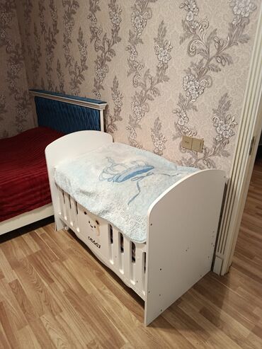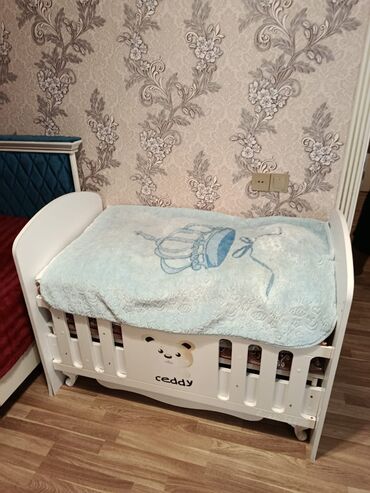 Şəkillərdə göstərilən mavi uşaq örtüyü komplektə daxil olduğu təqdirdə uyğunlaşır. Bu beşik körpənin rahat və təhlükəsiz yuxusu üçün praktik və estetik seçimdir.