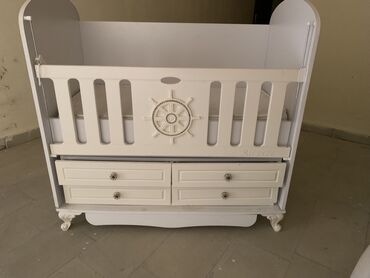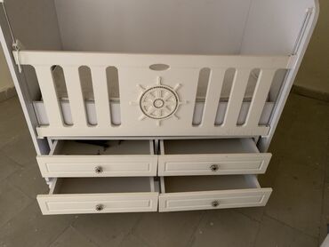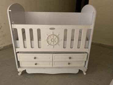 - Ön paneldə dekorativ gəmi sükanı ilə dizayn edilmiş klassik beşik.