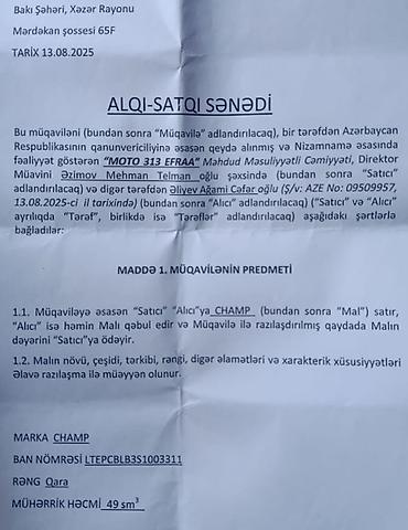 Salam. Skuter Keçən ilin oktyabr ayı almışam. Hec bir problemi yoxdur istənilən yerdə baxıb və yoxlada bilərsiz. Maşın alacam deyə satıram. 3300 km yol gedib. Çox az sürülüb vaxtı vaxtında yağı dəy...