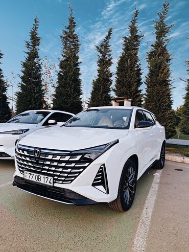 Changan uni z Plus hibrid/SUV – ağ rəng, AZ nömrə nişanı ilə.