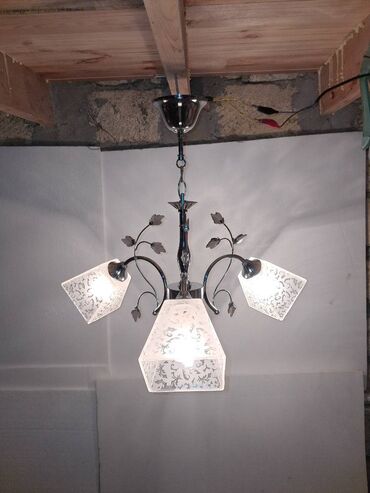 Zərif dizaynlı asma çilçıraq - Forma: dairəvi karkas - Material: parlaq qızılı rəngli metal konstruksiya, fasetli şəffaf şüşə/kristal asqılar - İşıq mənbəyi: çoxsaylı E27 tipli lampalar üçün yuval...