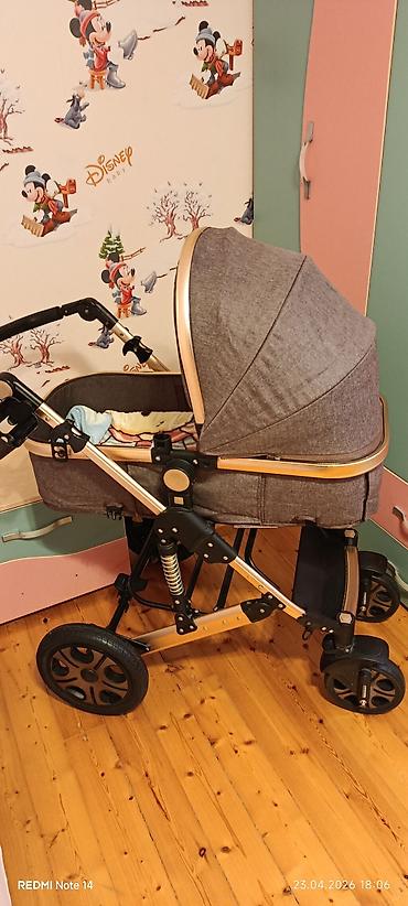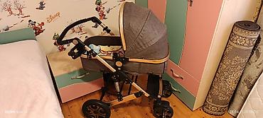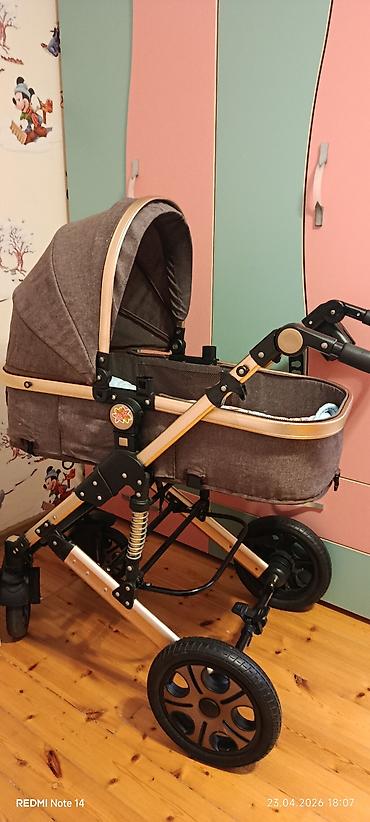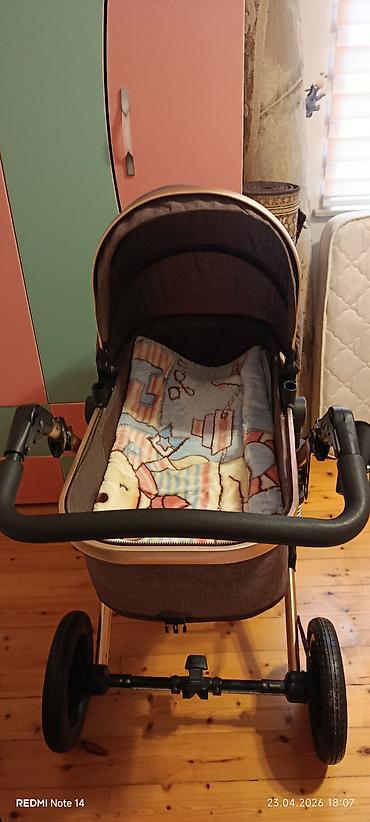 Uşaq arabası – çoxfunksiyalı beşik‑tipli model, yerdəyişmə ilə bağlı təcili dəyərindən aşağı satılır - 2‑də‑1 sistem: körpə üçün tam düz beşik bölməsi və oturaq vəziyyətə keçə bilən bölmə - Tənzi...