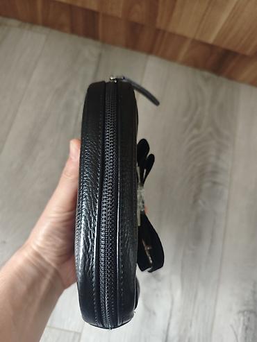 Kompakt qol çantası/kiçik bel çantası – qara rəngdə - Material: süni dəri (yumşaq tekstura) - Forma: kvadrat, sərt konturlu - Rəng: mat qara - Ölçü: təxminən kiçik/kompakt (ovuc ölçüsündə) - Bölmə...