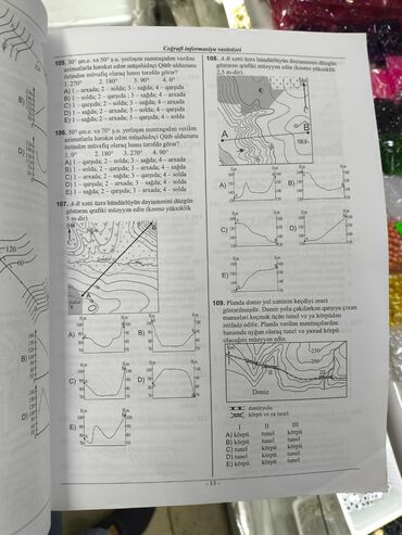 - Xəritə, kəsik, izohips, plan oxunuşu kimi “Coğrafi informasiya vasitələri” mövzularına dair şəkilli suallar