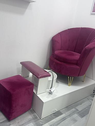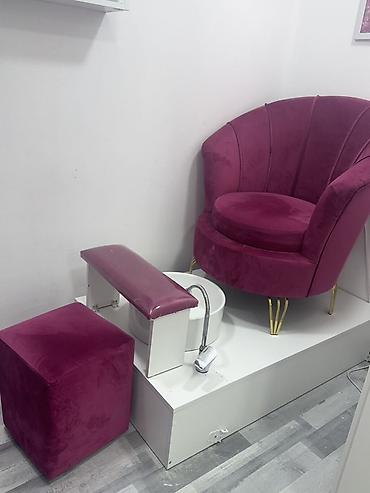 - Dəst: yumru beliyə malik komfort kreslo (qızılı metal ayaqlar), ustanın oturacağı üçün kvadrat puf, ayaq dayağı, dərin pedikür qabı (inteqrə olunmuş platformada), qarışdırıcı/kran və çevik şlanq