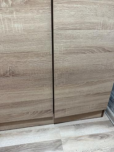 Açıq krem rəngdə 4 qapılı paltar şkafı - Ön hissədə 2 böyük güzgü