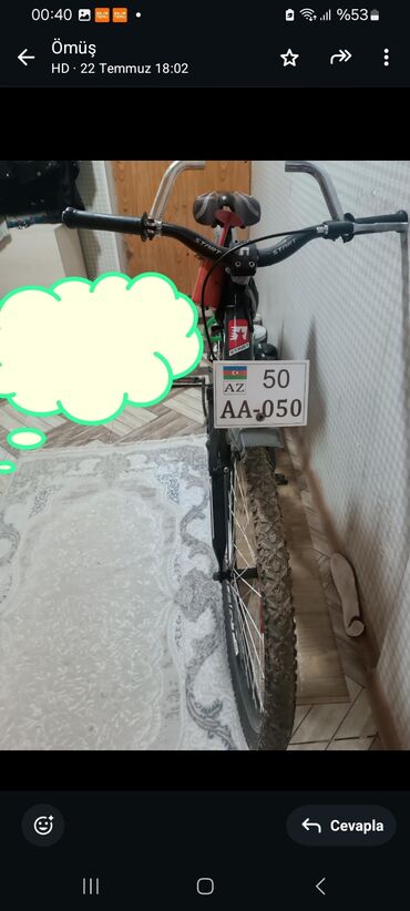 START markalı, qara rəngli dağ velosipedi, qırmızı vurğularla. Velosipedin təkərlərində torpaqlı yollar üçün uyğun protektorlar var. Ön və arxa palçıq qoruyucuları ilə təchiz olunmuşdur, bu da onu müxtəlif hava şəraitində sürmək üçün praktik edir. Rahat oturacaq və tutacaqlar uzun səyahətlər üçün uyğundur. Velosipedin çərçivəsində su şüşəsi üçün tutacaq quraşdırılmışdır, bu da səfərlər zamanı maye qəbulunu təmin edir. Qabaq təkərin yaxınlığında qırmızı rəngli kiçik bir çanta da görünür. Bu velosiped təbiətdə gəzintilər və ya kənd yolları ilə səyahətlər üçün etibarlı seçimdir.