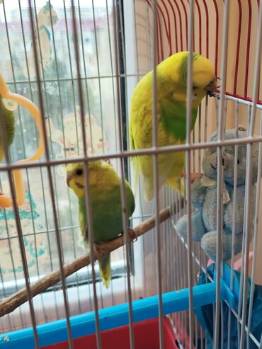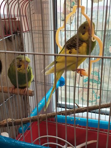 Məhsul: Dalmatin və yaşıl-sarı rəngli dalğıç (budaq cinsli) büdcə paraket quşları – komplekt qəfəs və aksesuarlarla