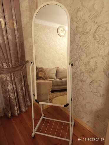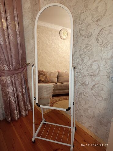 Komplekt: Güzgü, metal stend, alt rəf və fiksasiya vintləri.