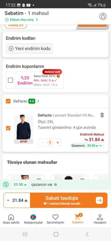 65 manatdir endirimle 31.80 almisam 30 manat satiram
