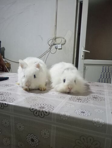 Ağ tüklü dovşanlar – uzun tüklü (lionhead tipli) dekorativ cins - Rəng: tam ağ, qulaqlarda açıq krem tonları - Xüsusiyyətlər: sıx və yumşaq uzun tük örtüyü, yığcam bədən quruluşu, iri qara gözlər ...