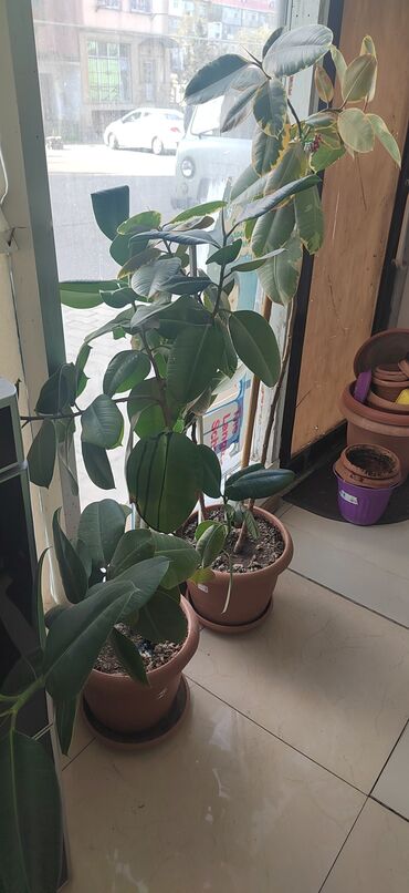 - Fikus elastika (kauçuk ağacı – yaşıl və xallı yarpaqlı sortlar): Böyük, parlaq yarpaqları sayəsində ofis və ev interyerinə həcmlilik qatır. Parlaq, səpələnmiş işıqda yaxşı böyüyür. Torpaq quruduqca suvarmaq, yarpaqları vaxtaşırı silmək kifayətdir. Gövdə dayağa bağlanaraq formalaşdırıla bilər.