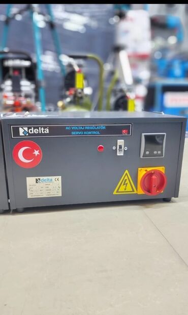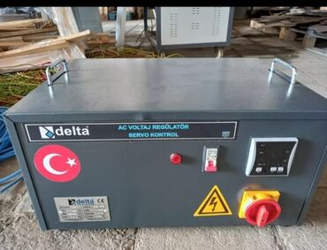Sənaye tipli gərginlik tənzimləyicisi/şəbəkə stabilizatoru – DELTA markası Xüsusiyyətlər: - Giriş: 380 V üç faza (etiket üzərində göstərilib) - Çıxış: tənzimlənən AC gərginlik - Ön paneldə analoq ...