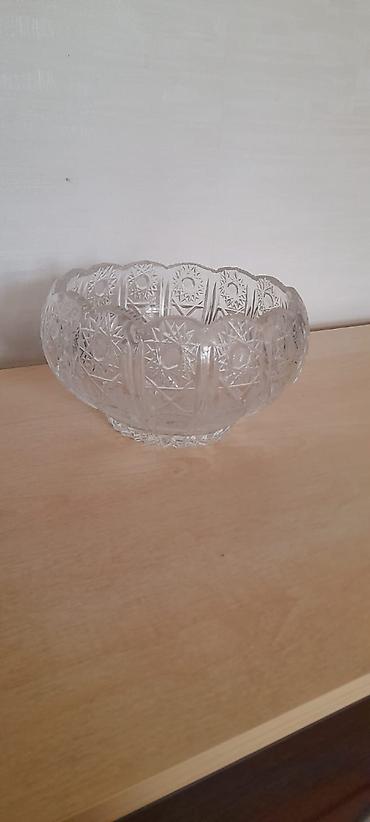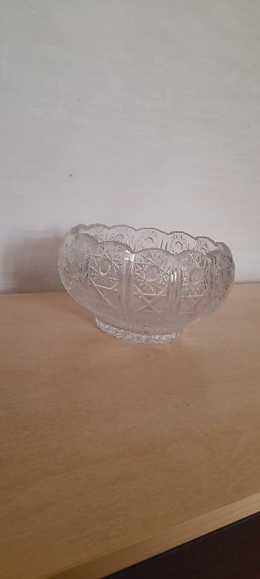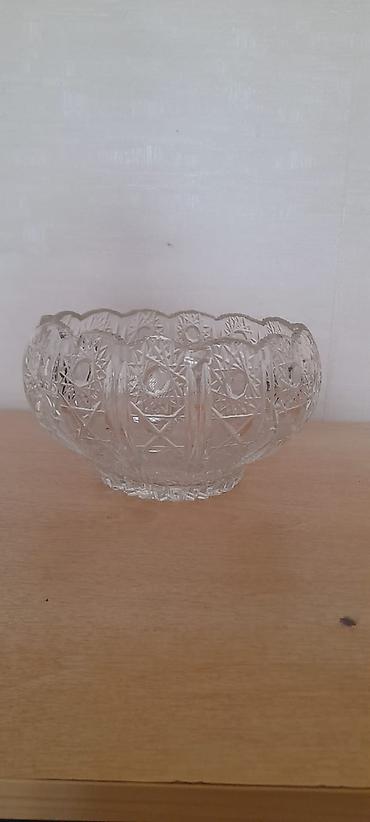 Şüşə/kristal salat qabı - Material: şəffaf preslənmiş şüşə (kristal effektli) - Forma: dairəvi, hündür kənarlı - Dizayn: çoxüzlü, relyefli geometrik naxışlar; işığı gözəl sındırıb parıltı yaradır ...