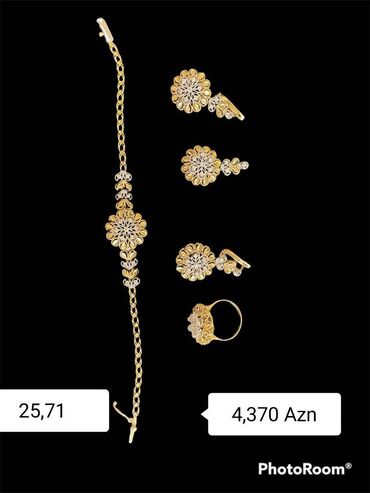 Dəstə daxildir: Üzük, Sırğa, Bilərzik, Sarı qızıl, 585 Əyar, 31 g
