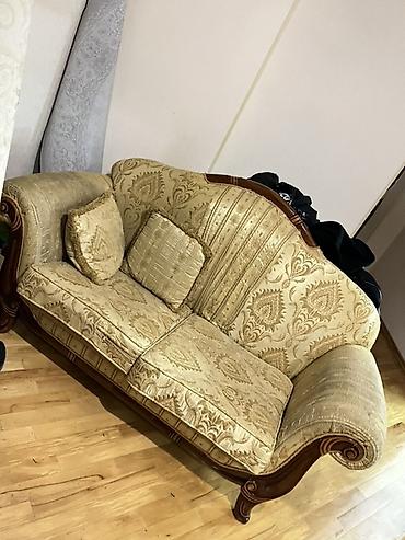 - Üslub: Klassik/neo‑barok elementləri, taxta karkas və oyma dekorlu qollar, ön ayaqlar və üst haşiyə