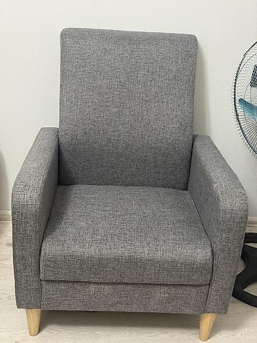 divan - Klassik, düz xətli dizayn: Hündür bel hissə, enli qol dayaqları, dekorativ tikişlərlə bölünmüş oturacaq və arxa hissə. - Material: Yumşaq toxumalı parça (müxtəlif rənglər – boz, göy, qəh...