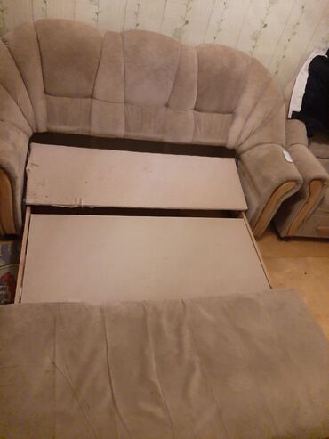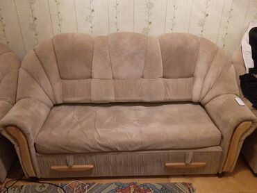 QƏTİ ZƏNG VURMAYİN. VATSAPA BURA YAZİN. YAXÇİ VƏZİYYƏTDƏ SİNİĞİ QİRİĞİ YOX. - Tərkib: 1 ədəd iki nəfərlik divan (açılıb yatacaq kimi istifadə oluna bilir), 2 ədəd iri kreslo. - Rəng və dizayn: Tü...