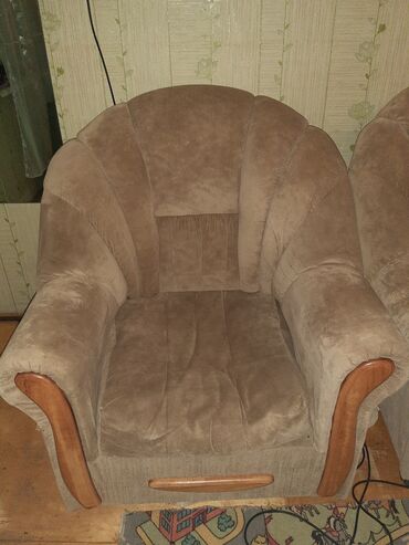 Klassik yumşaq mebel dəsti - 2 ədəd geniş kreslo: qəhvəyi və bej rənglərin kombinasiyasında, naxışlı parça üzlük, yüksək bel dayaqı, yumşaq yanlıklar. Oturacaq hissəsi dərin və rahatdır. - 1 ədəd ...