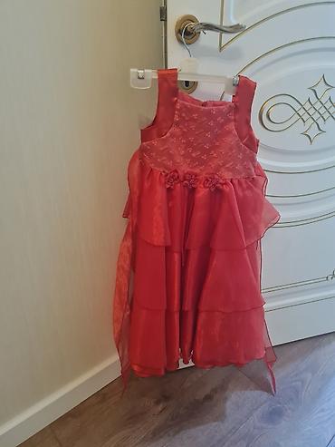 Ad gününə özəl olaraq tikdirilib, 1 dəfə geyinilib, 1-2 yaş üçün uyğundur. Qız uşaqları üçün qırmızı rəngli ziyafət/libas - Dizayn: A-kesimli, çoxqatlı ətək, tüllü və şifon qatlar, parıltılı payet...