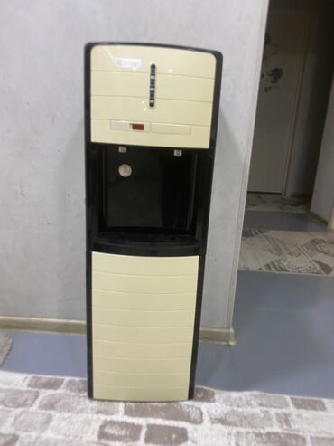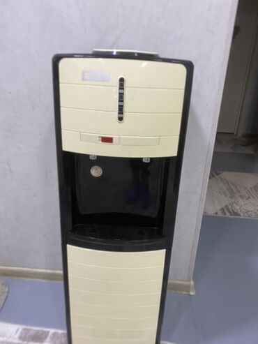 Ölçülər təxmini: standart döşəmə tipli dispenser ölçüləri (hündür). Marka loqosu üst paneldə göstərilib.