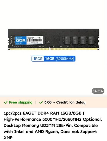 Məhsul: Kingston ValueRAM DDR4 yaddaş modulu SAY VAR...!!!! - Model: KVR24N17S8/4 - Tutum: 4 GB - Nəsil: DDR4 - Sürət: 2400 MT/s (PC4-19200) - Gecikmə: CL17 - Form-faktor: UDIMM (desktop) - Modul ...