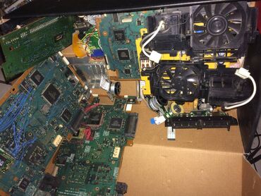 PlayStation 2 konsolu, əsasən qara rəngdədir. Şəkillərdən birində konsolun daxili komponentləri, o cümlədən yaşıl dövrə lövhəsi və optik disk sürücüsü görünür. Bu konsol klassik oyun təcrübəsi təqd...