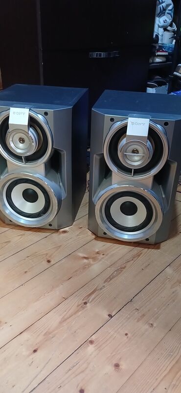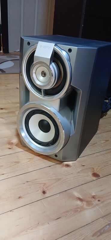 Sony ev audio dinamikləri. Hər bir dinamikdə iki sürücü mövcuddur: yuxarıda daha kiçik tviter və aşağıda daha böyük vuffer. Dinamiklər gümüşü və qara rənglərin birləşməsindən ibarətdir, bu da onlara müasir görünüş verir. Hər iki dinamikin yuxarı hissəsində "SONY" loqosu yerləşir. Evdə musiqi dinləmək və ya film izləmək üçün uyğundur.
