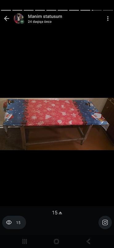 - Taxta stol – üstü naxışlı süfrə ilə örtülüb, iki yandan dayaqlı, aşağıda əlavə traverslə möhkəmləndirilmiş.