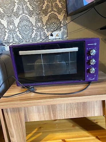 - Rəng: bənövşəyi/qara korpus, şüşə qapı, metal tutacaq