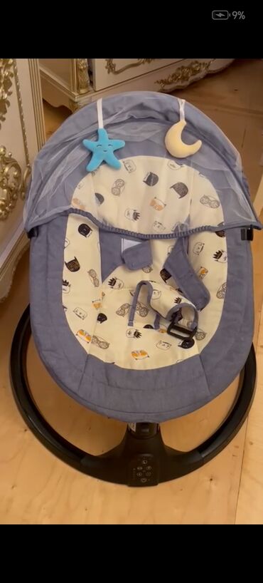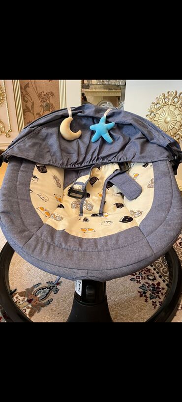 Elektriklə işləyən beşik-sallanma kreslosu - Rəng: bej/ivory tonlarında, metallik baza - Avtomatik sallanma sistemi: alt hissədə idarə paneli, şəbəkə kabeli ilə işləyir - Ergonomik oturacaq: nəfəs...