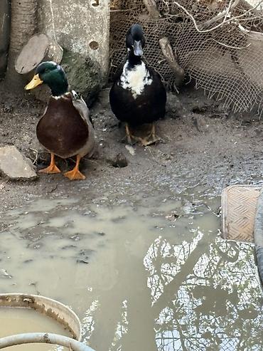 Satılır erkey disi barterdə var toyuq yada lal Ördəy Xüsusiyyətlər: - Növ: ev ördəyi (mallard tipli rənglənmə) - Say: 2 ədəd, erkək–dişi cüt - Rəng: qara-yaşıl parıltılı başlı erkək, qara-ağ naxış...