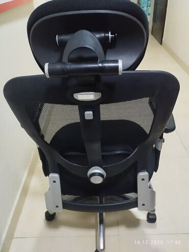 Ev ofisi, iş yerləri və uzunmüddətli kompüter işi üçün rahat seçim. Fotoşəkillərdə kreslonun detalları görünür. Tarix göstəricisi: 16.12.2025.